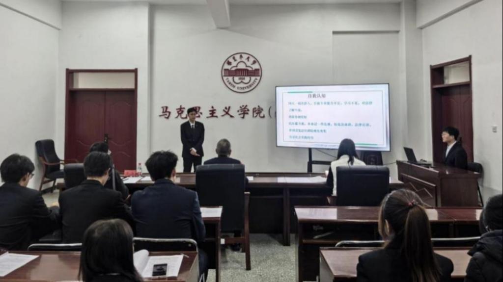 本次大赛特邀学院党委副书记杨震、学生办公室主任罗殷、团委书记芮雪担任评委。来自马克思主义理论与法学专业的14名选手同台竞技,选手覆盖大一至大三年级,充分展现了学院各年级学子对职业发展的深入思考与积极探索。